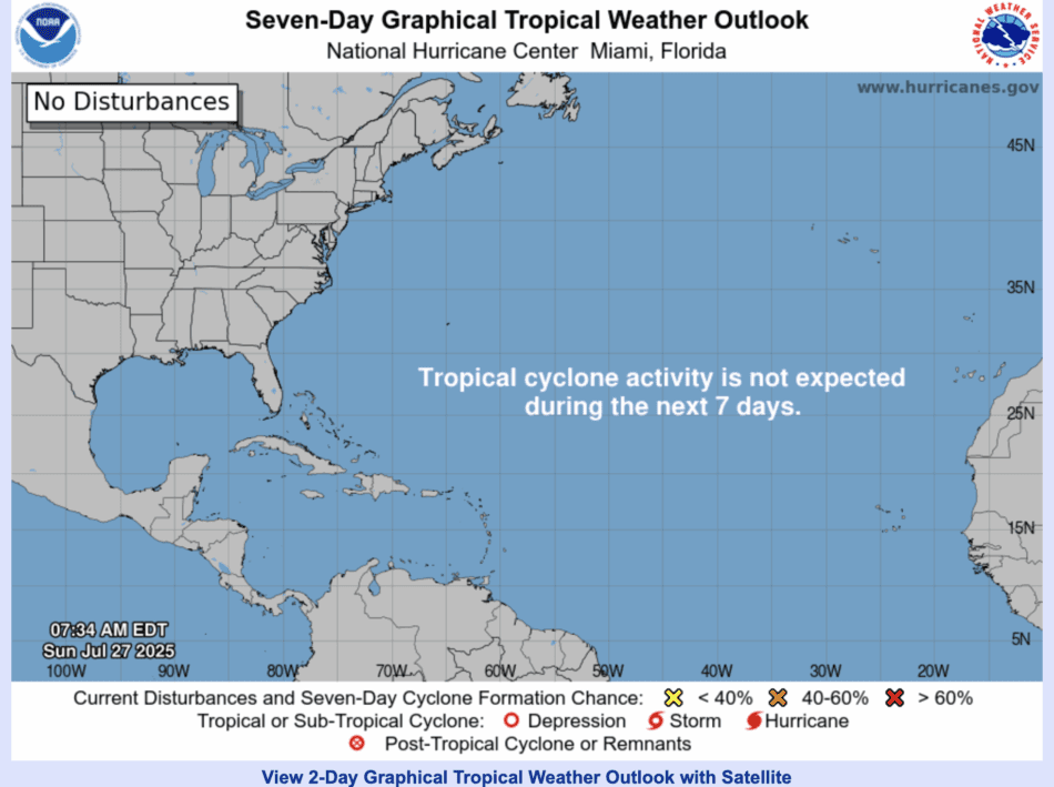| Tropical Weather Outlook 800 AM EDT Sun 27 July 2025 1205 UTC Sun 27 July 2025 | |