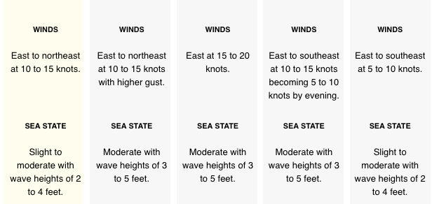 Winds: Today: ENE 10-20 mph Tonight: ENE 10-15 mph