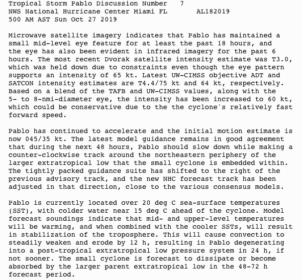 PABLO STRENGTHENS WHILE ACCELERATING AWAY FROM THE AZORES
