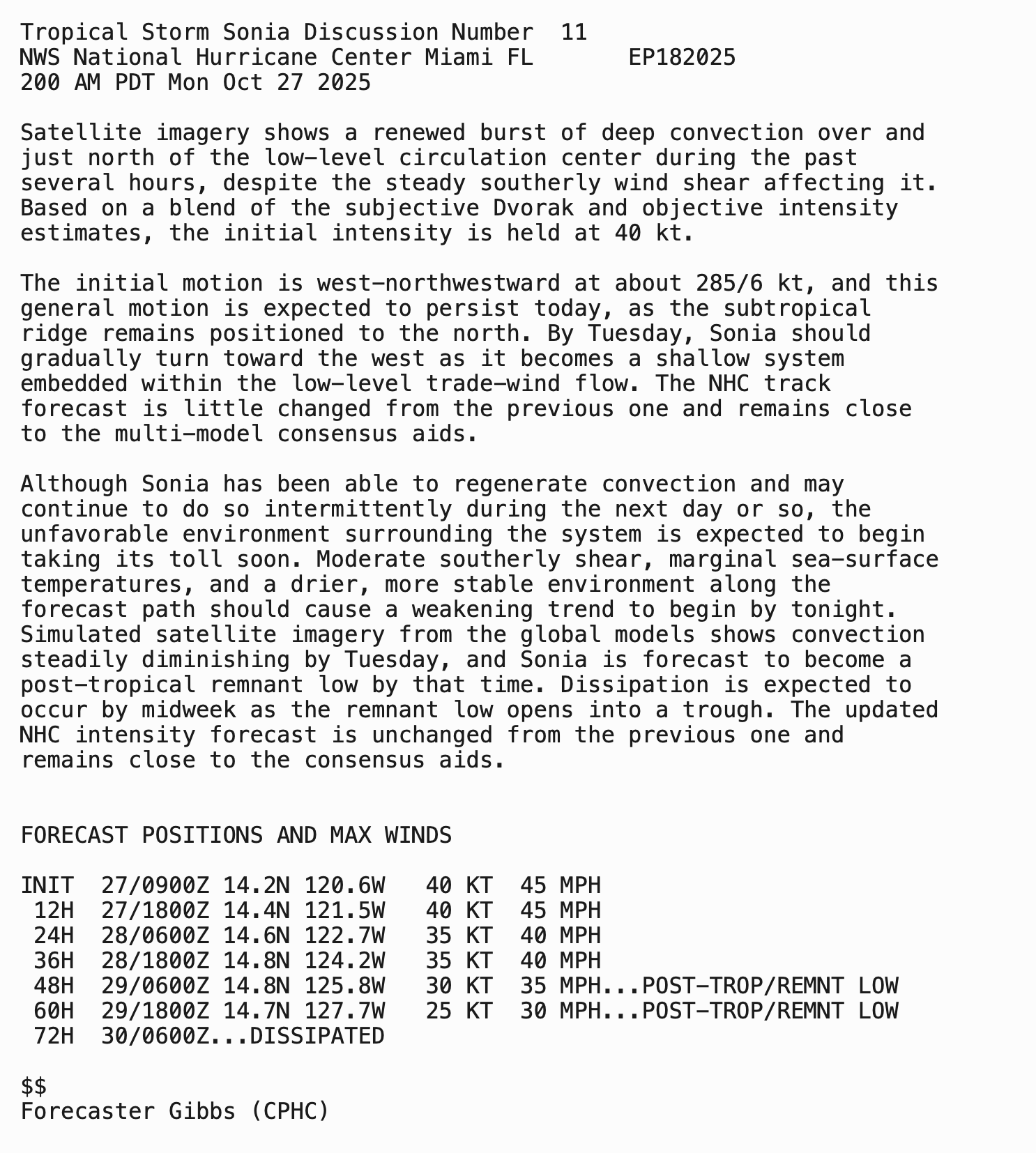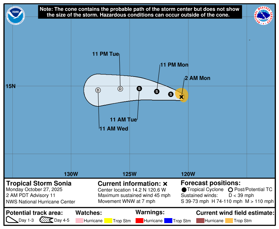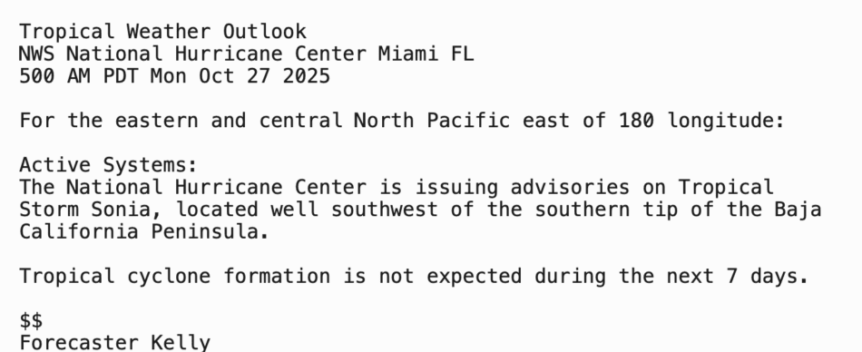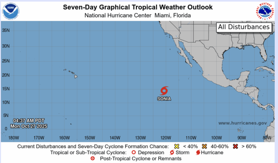 | Tropical Weather Outlook 500 AM PDT Mon 27 Nov 2025 1005 UTC Mon 27 Nov 2025 | |