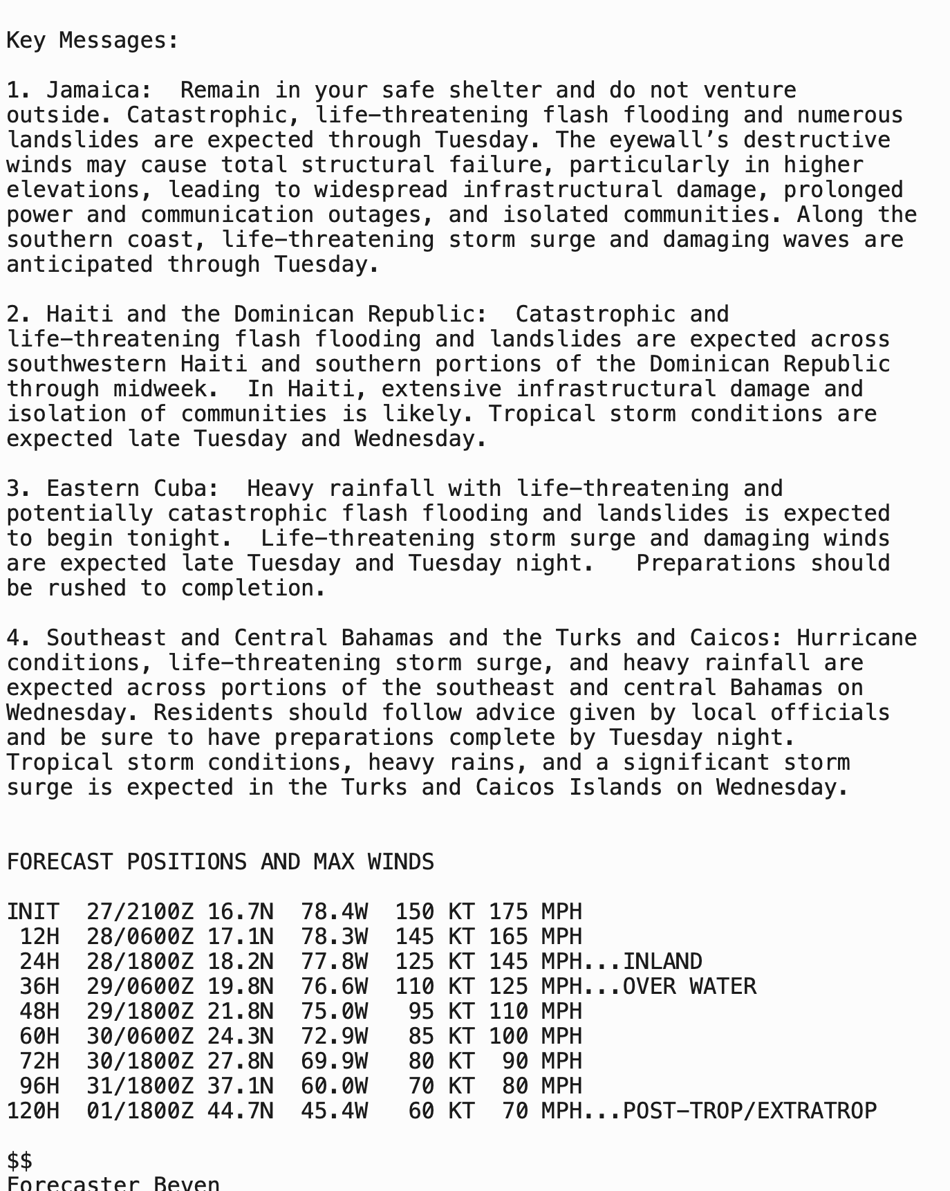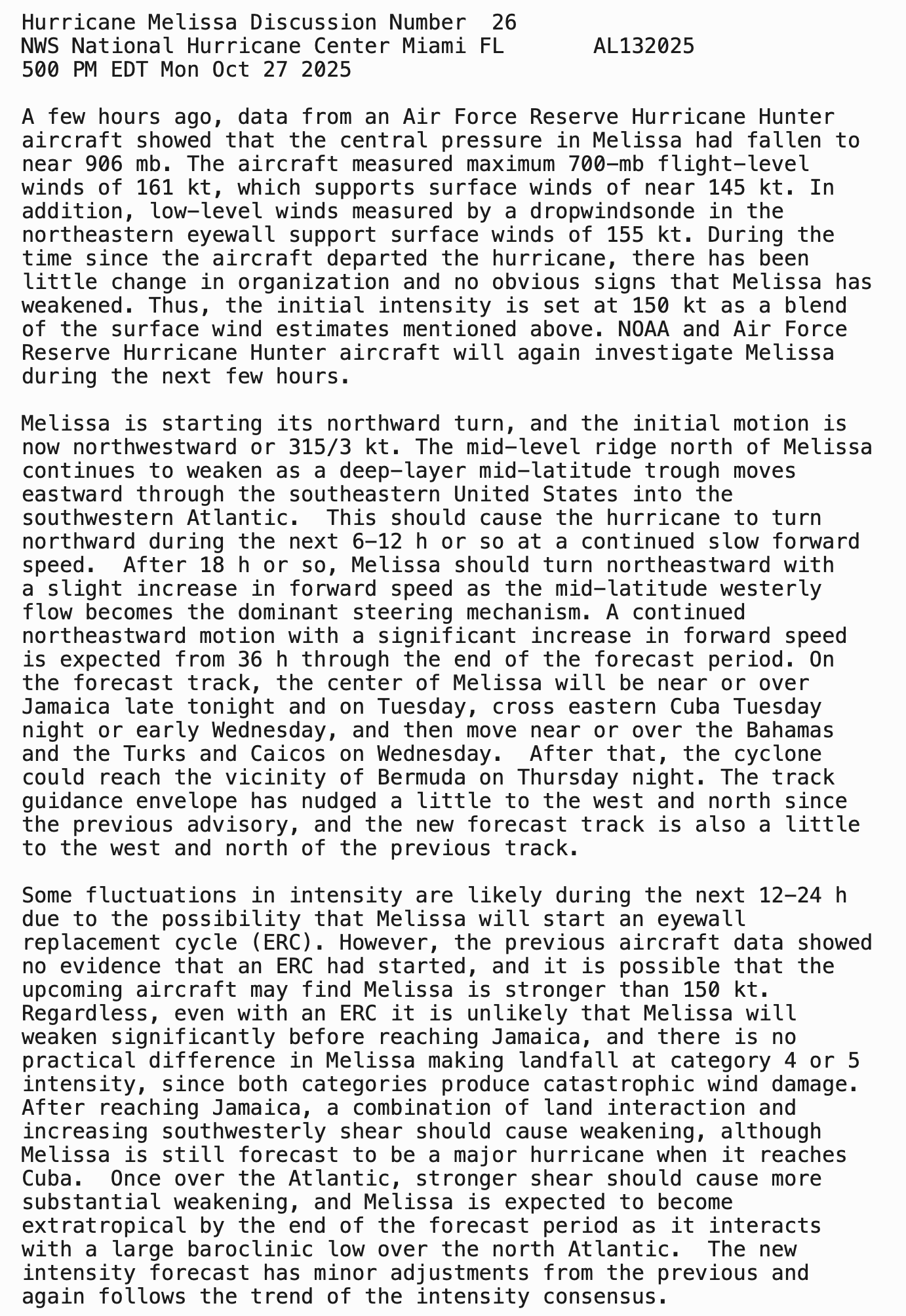 CATEGORY 5 MELISSA MOVING SLOWLY WEST-NORTHWESTWARD AND EXPECTED TO TURN NORTHWARD LATER TODAY… …CATASTROPHIC AND LIFE-THREATENING WINDS, FLOODING, AND STORM SURGE EXPECTED ON JAMAICA TONIGHT AND EARLY TUESDAY