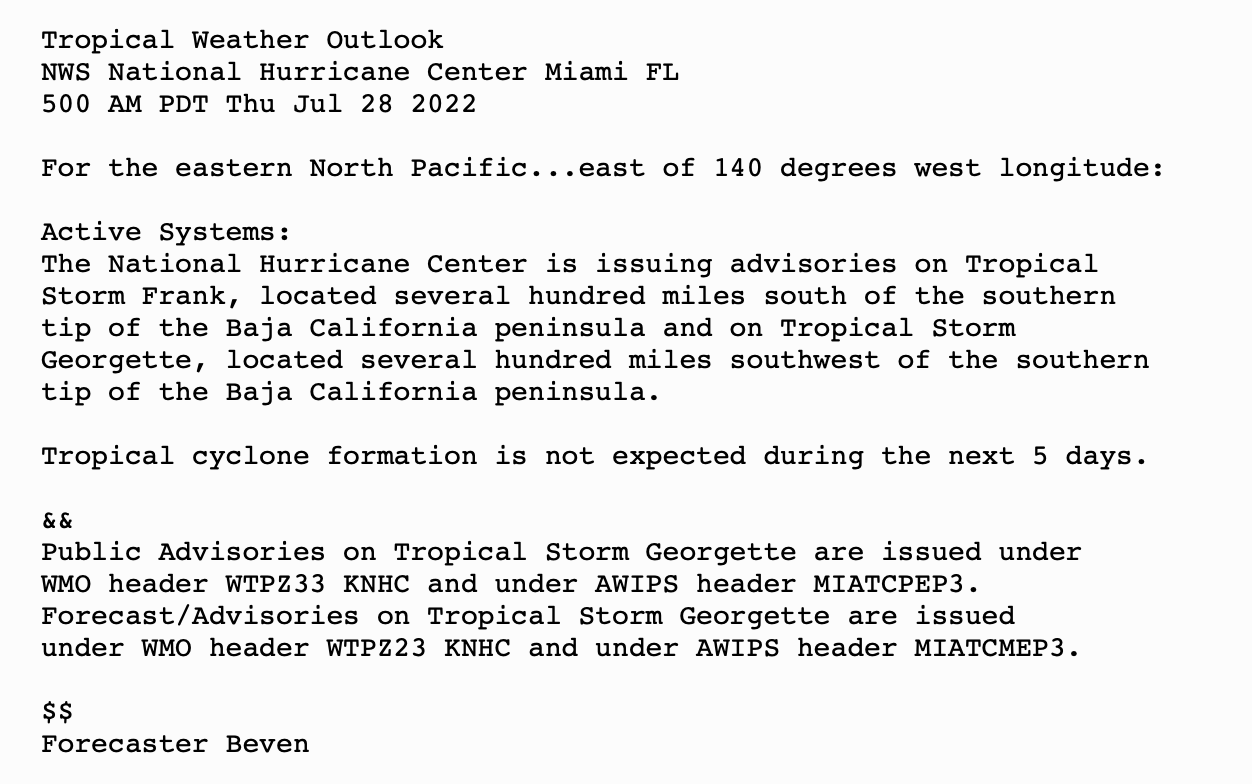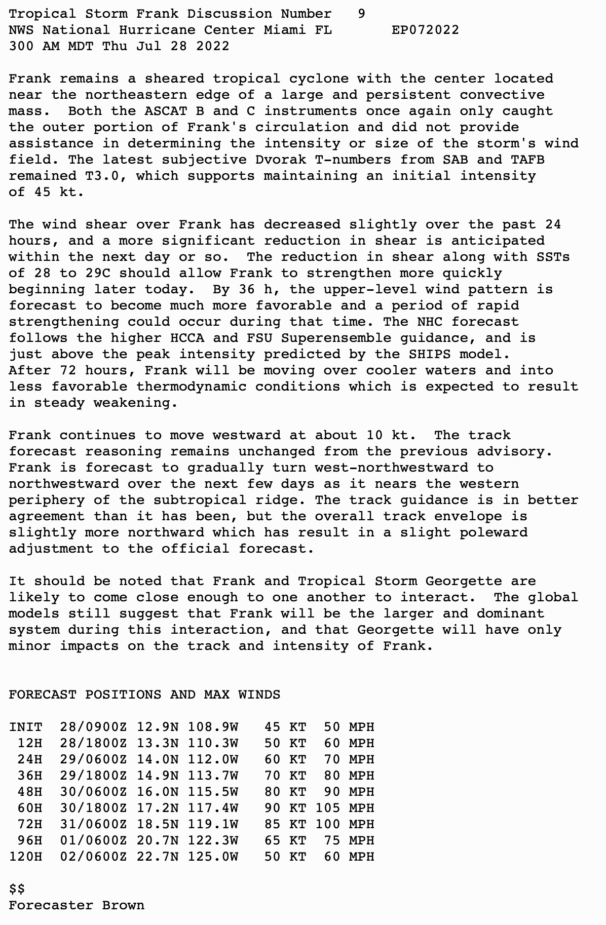 500 AM PDT Thu July 28 2022 Tropical Weather Discussion