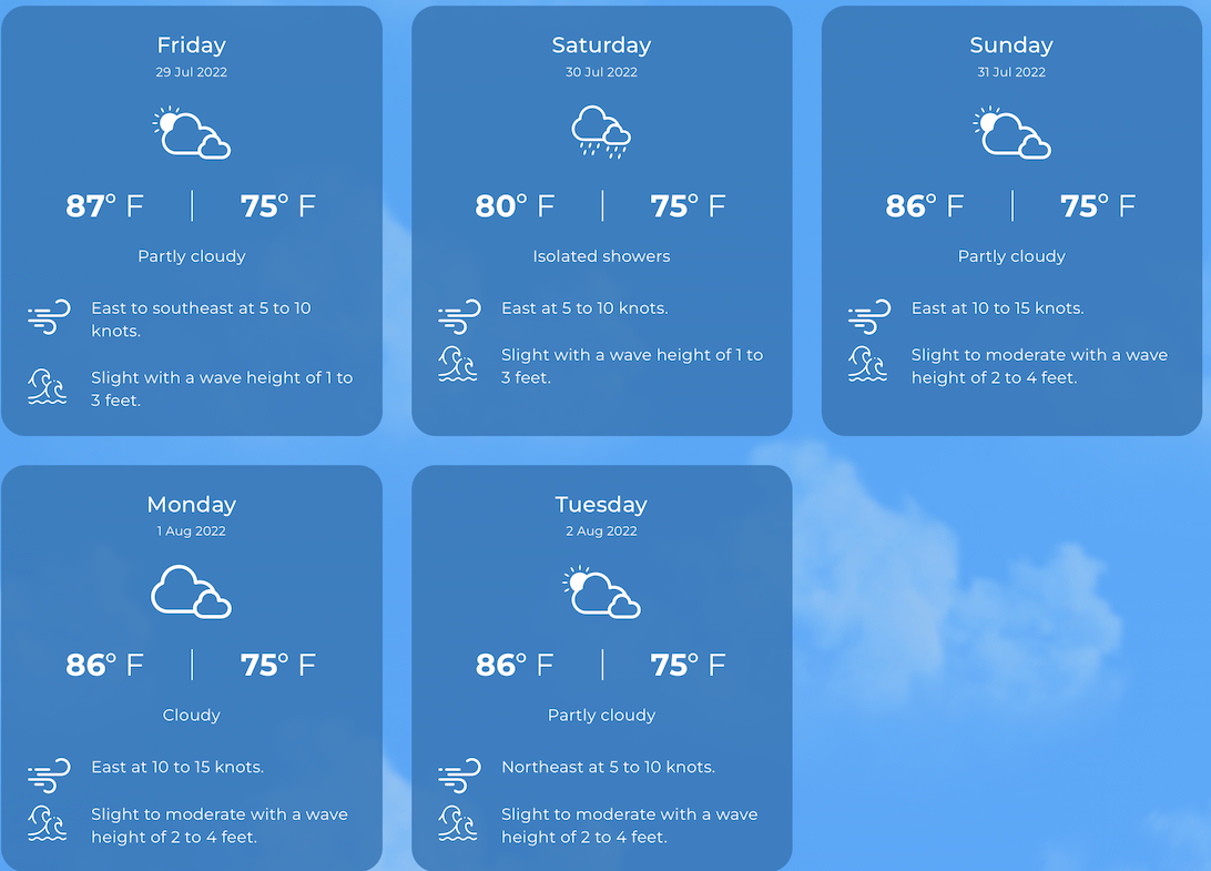 IMPORTANT NOTICEThe times reflected in the tidal table for Grand Cayman are predictions valid as references for sports fishing in areas near the coast of Grand Cayman. THEY ARE NOT SUITABLE FOR NAVIGATION. Remember that to practice any activity at sea like diving, windsurfing and fishing from a boat or underwater fishing should always be consulted with the official tide tables of the port of Grand Cayman.