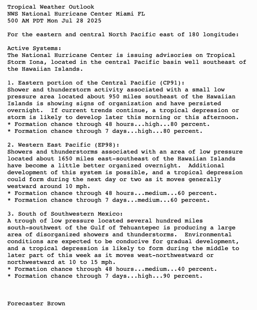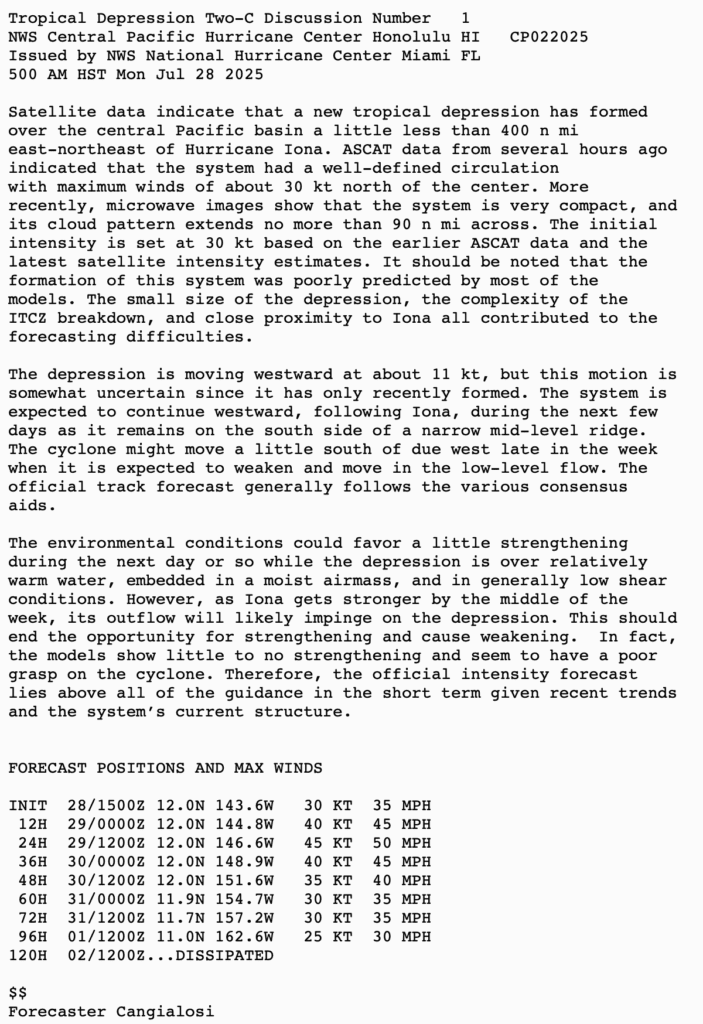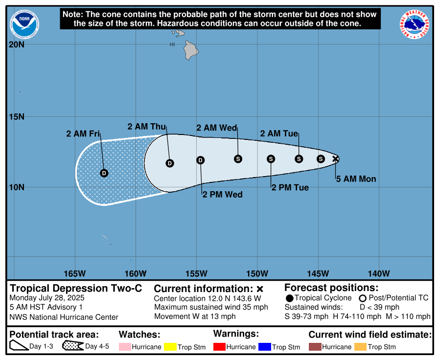 NEW TROPICAL DEPRESSION FORMS IN THE CENTRAL PACIFIC