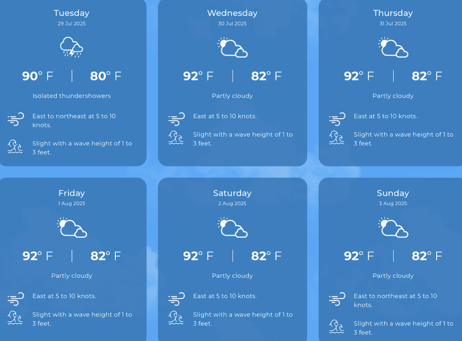 Expected temperatures: 82°F to 92°F. Yesterday: H 90.7°F  L 80.7°F