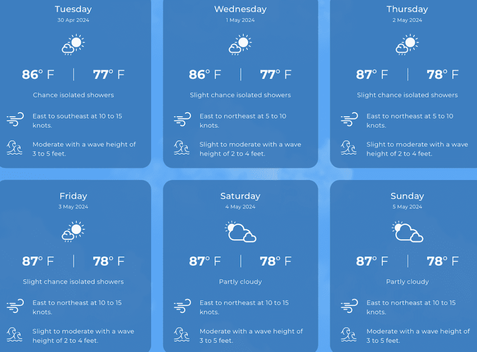 Expected temperatures: 77°F to 86°F. Yesterday: H 86.9°F L 78.4.°F