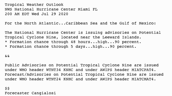 | Tropical Weather Outlook (en Español*) 800 AM EDT Wed Jul 29 2020 |