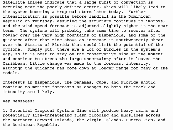 Potential Tropical Cyclone Nine…HEAVY RAINFALL AND GUSTY WINDS SPREADING OVER THE LEEWARD ISLANDS