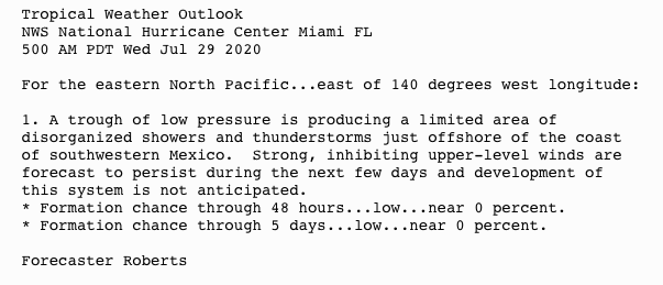 | Tropical Weather Outlook 500 AM PDT Wed Jul 29 2020 |
