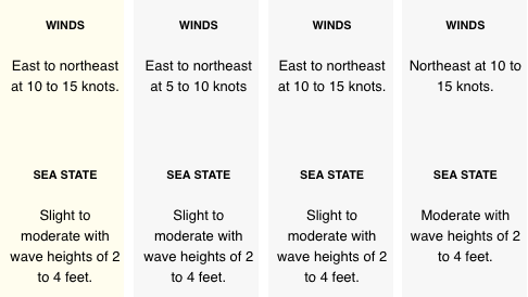 Winds: Today:ENE 10-20 mph Tonight: NE 10-20 mph