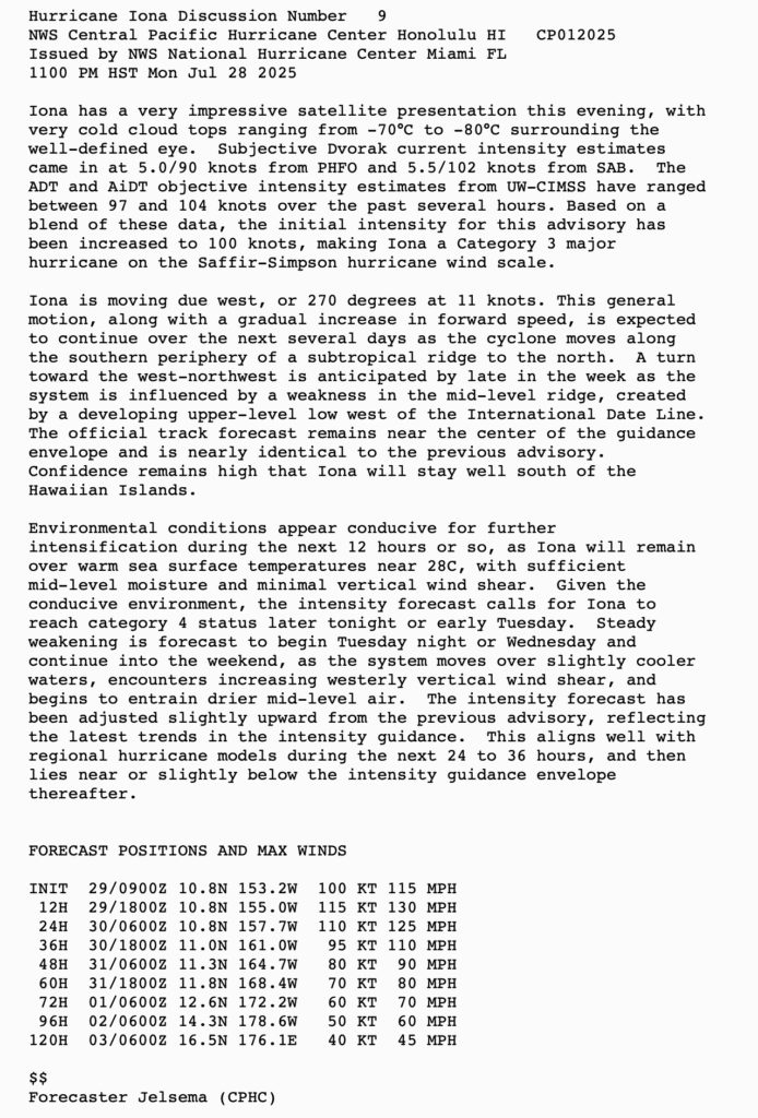 IONA STRENGTHENS INTO A MAJOR HURRICANE FAR SOUTH-SOUTHEAST OF THE HAWAIIAN ISLANDS