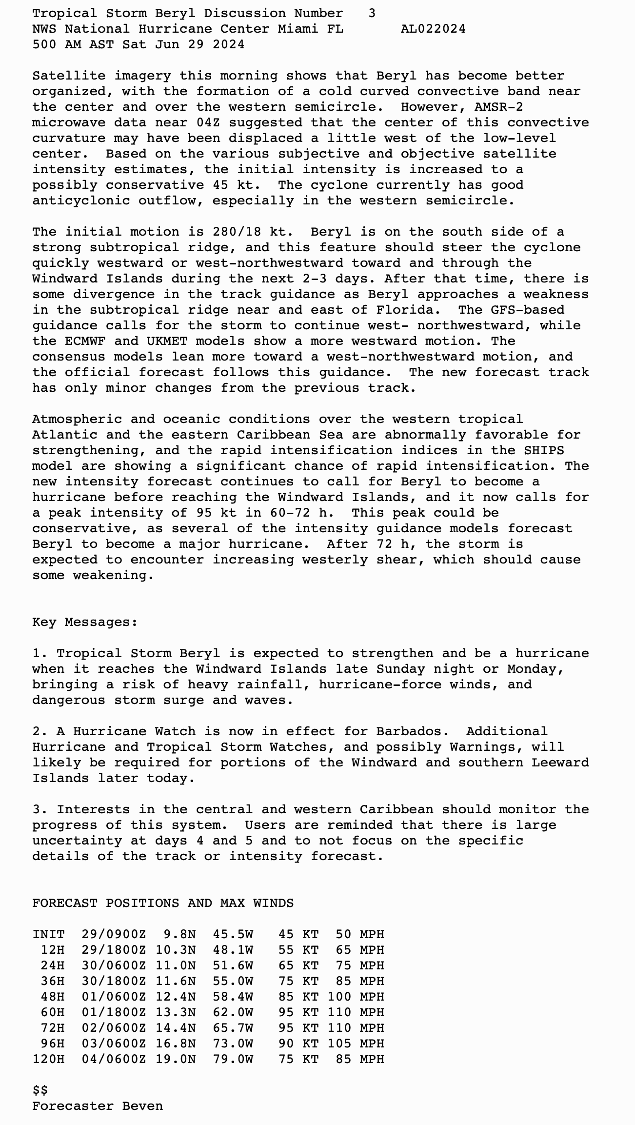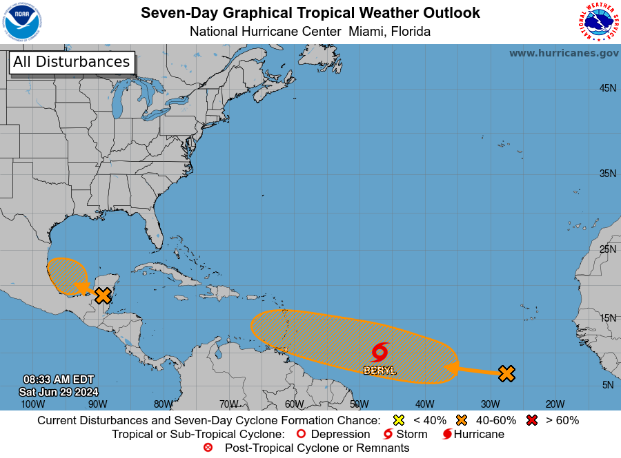 | Tropical Weather Outlook 500 AM PDT Sat 29 June 2024 Tropical Weather Discussion 1005 UTC Sat 29 June 2024 | |