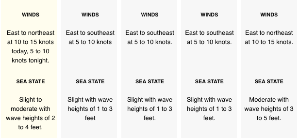 Winds: Today: ENE 5-10 mph Tonight: E 5-10 mph