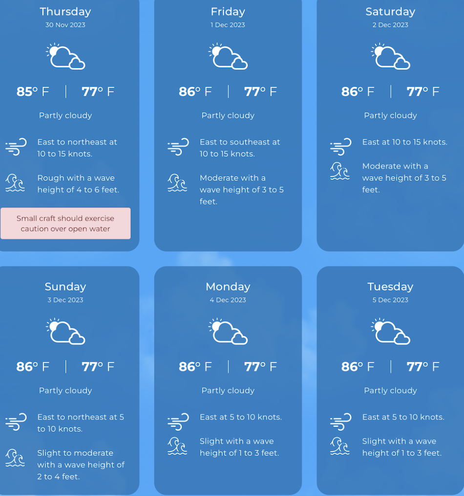 Temperatures: Yesterday – Low 77.1°F, High 85.4.°F Today (Expected) – Low 77°F High 85°F