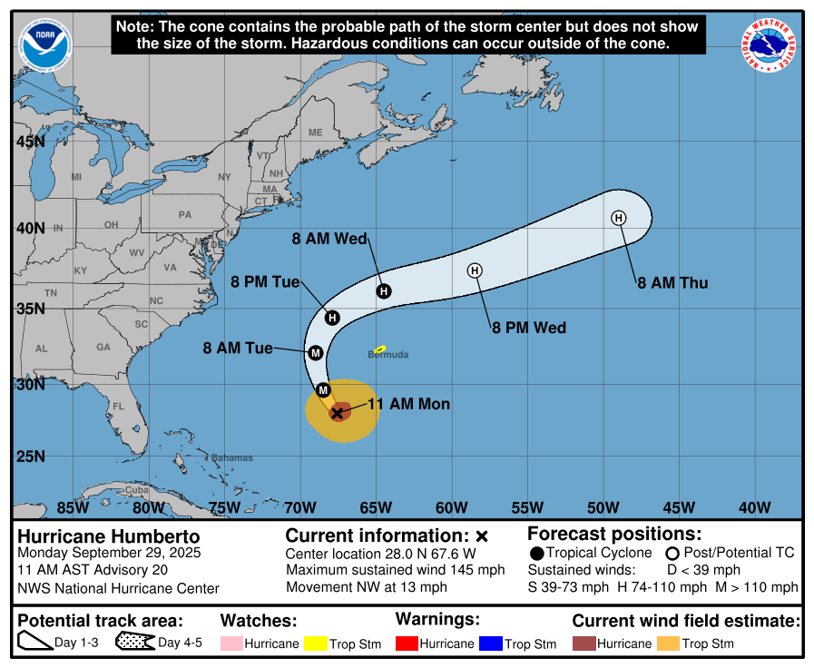 HUMBERTO EXPECTED TO PRODUCE DANGEROUS SURF AND RIP CURRENTS FOR BERMUDA AND MOST OF THE U.S. EAST COAST THIS WEEK… …TROPICAL STORM CONDITIONS POSSIBLE IN BERMUDA ON TUESDAY