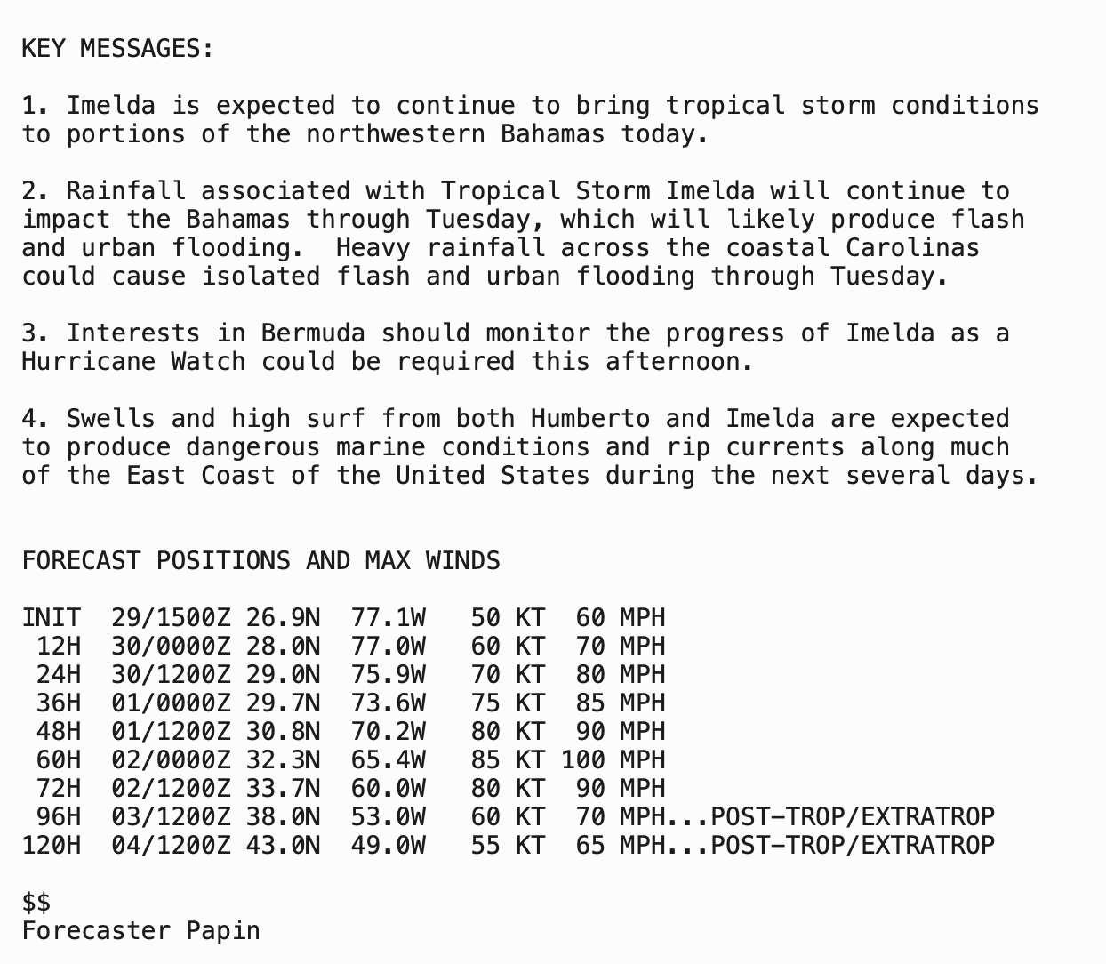 IMELDA STRENGTHENING… …TROPICAL STORM CONDITIONS CONTINUE FOR THE NORTHWEST BAHAMAS AND INTERESTS IN BERMUDA SHOULD CLOSELY MONITOR IMELDA.