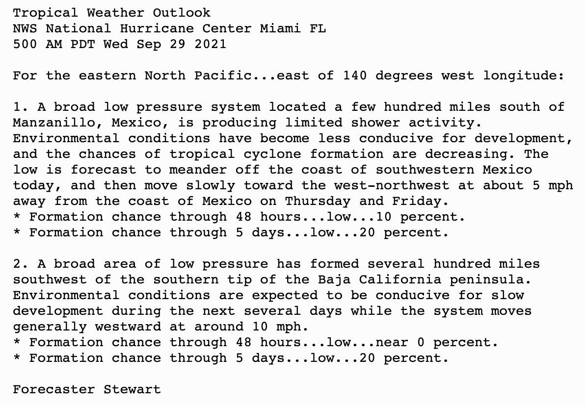 800 AM EDT Wed Sep 29 2021