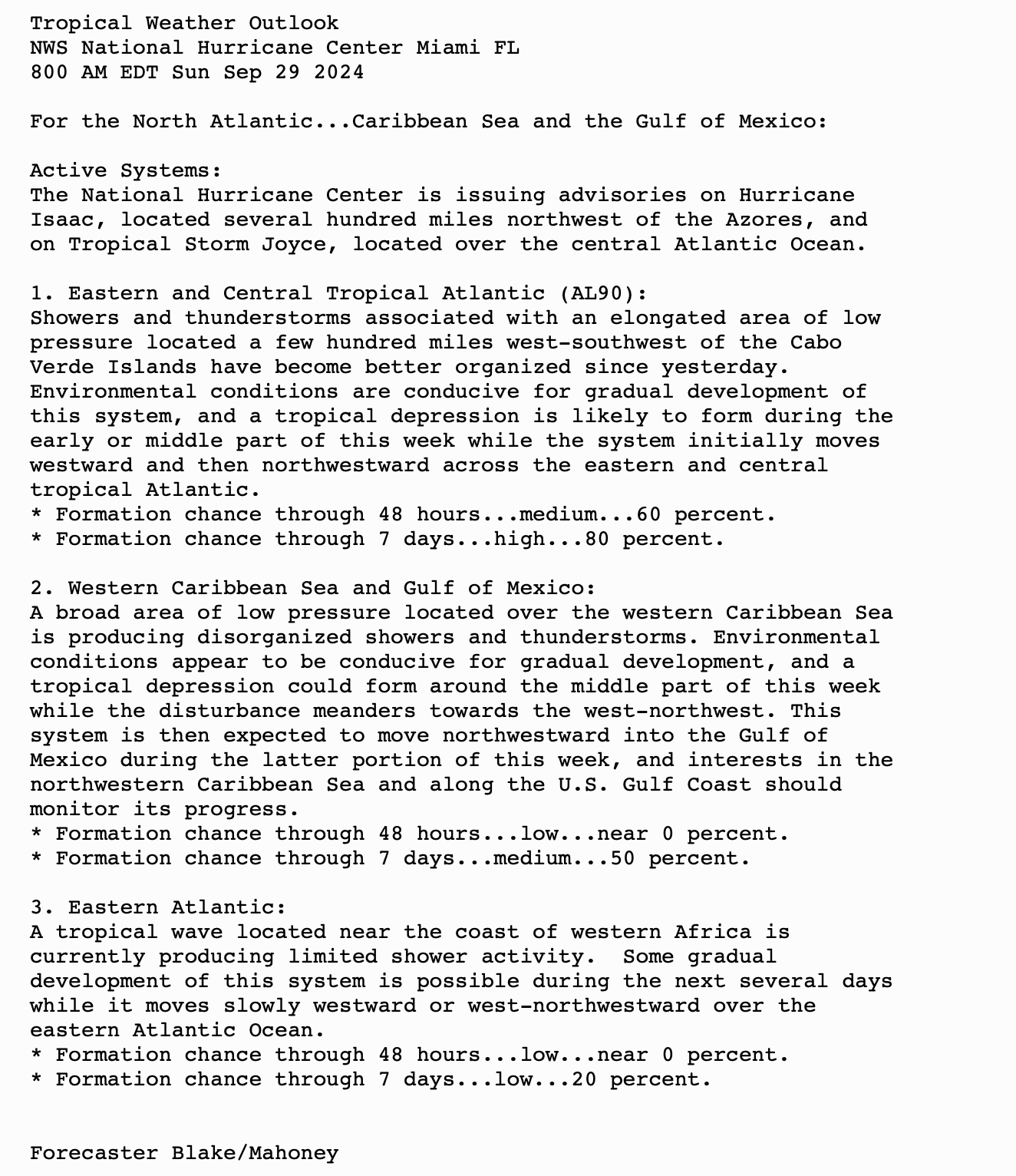 | Tropical Weather Outlook Text | Tropical Weather Discussion |