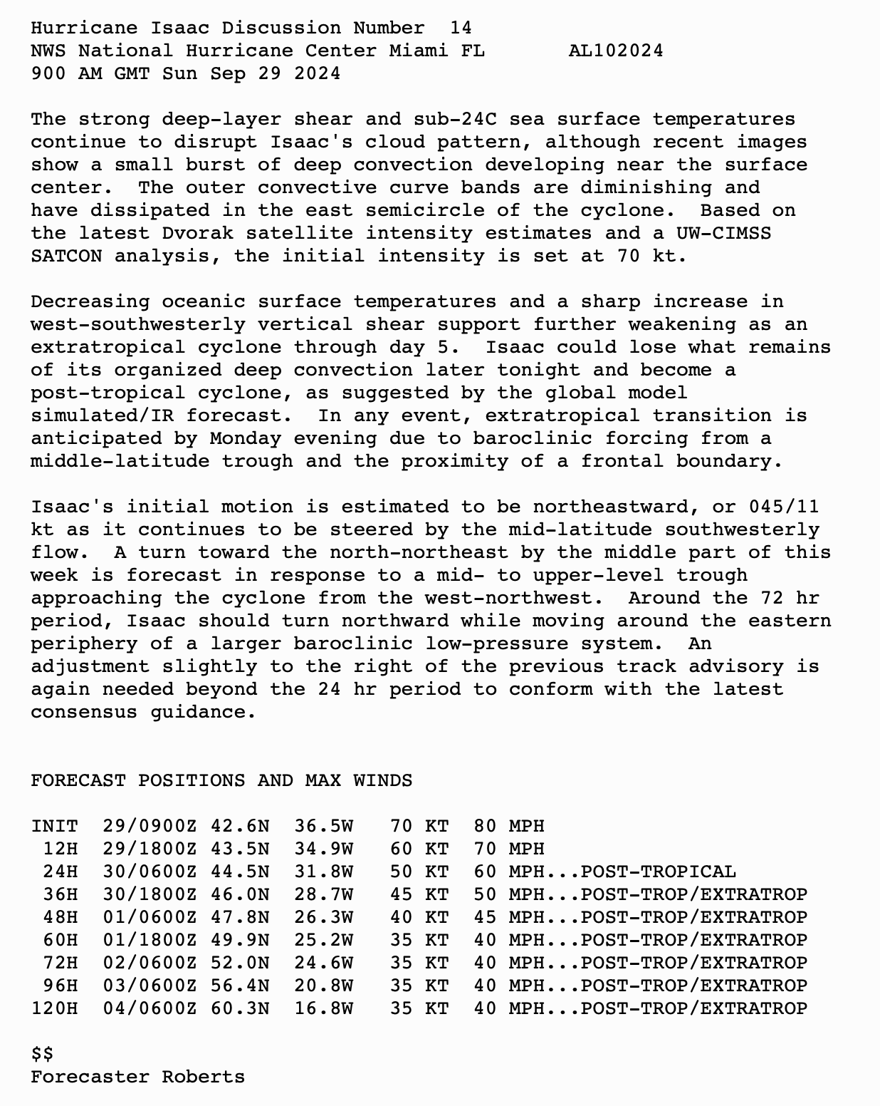 ISAAC STILL A HURRICANE… …LARGE AREA OF DANGEROUS HIGH SEAS SPREADING SEVERAL HUNDRED MILES FROM ISAAC’S CENTER