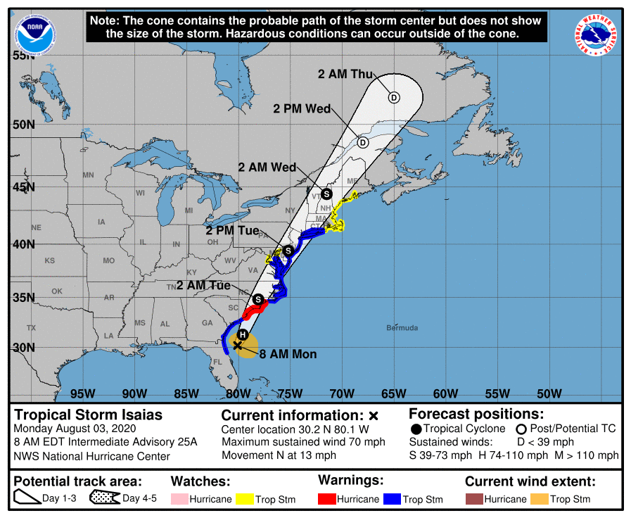 ISAIAS PASSING WELL OFFSHORE THE NORTHEAST FLORIDA COAST… …FORECAST TO BECOME A HURRICANE LATER TODAY