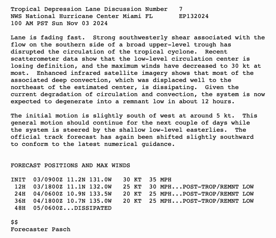 .LANE LIKELY TO BECOME A REMNANT LOW LATER TODAY