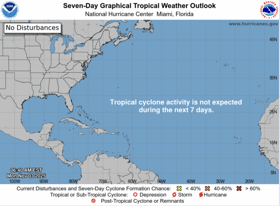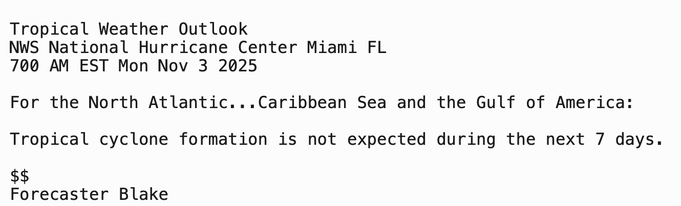 | Tropical Weather Outlook 800 AM EDT Mon 3 Nov 2025 1205 UTC Mon 3 Nov 2025 | |