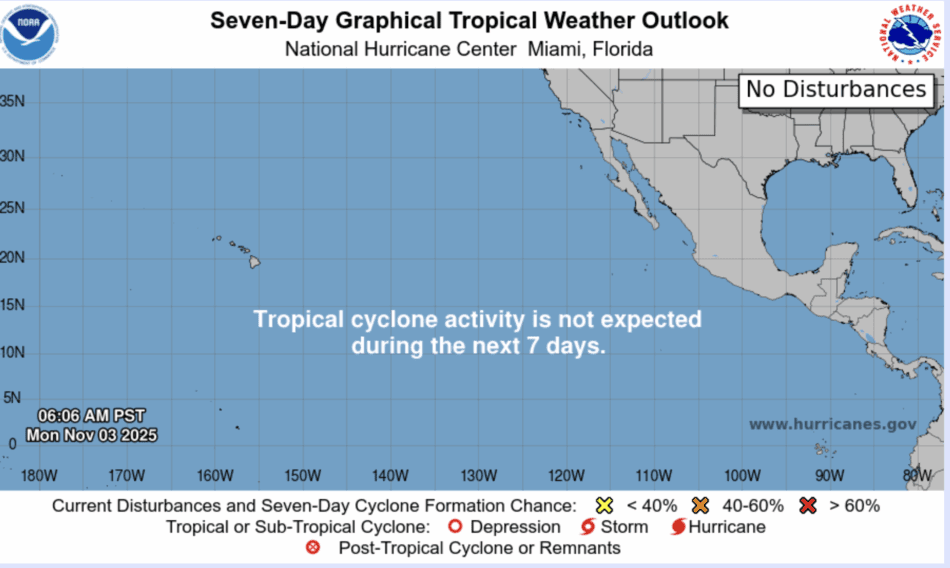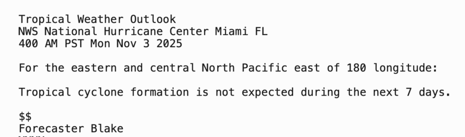 | Tropical Weather Outlook 500 AM PDT Mon 3 Nov 2025 1005 UTC Mon 3 Nov 2025 | |