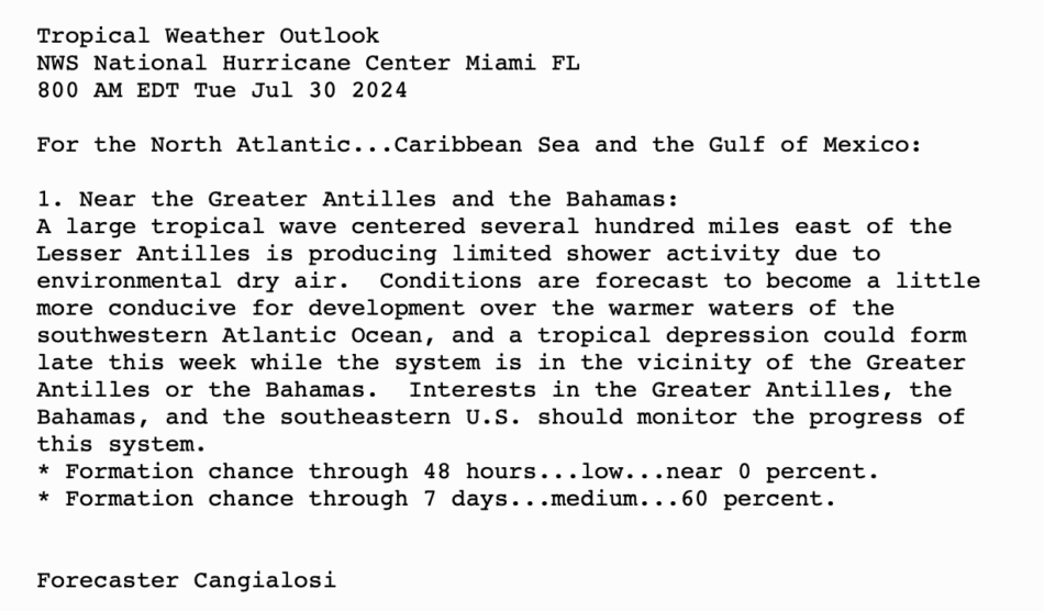 | Tropical Weather Outlook Text | Tropical Weather Discussion |