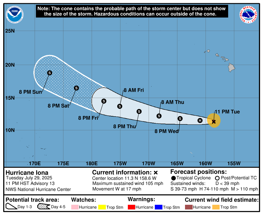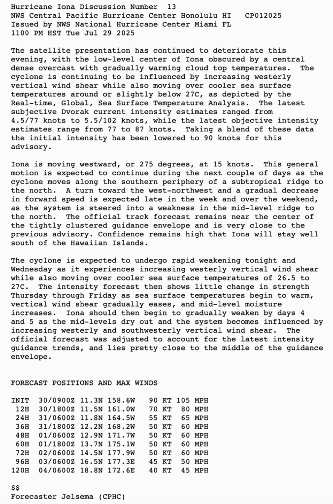 IONA RAPIDLY WEAKENING WELL TO THE SOUTH OF HAWAI