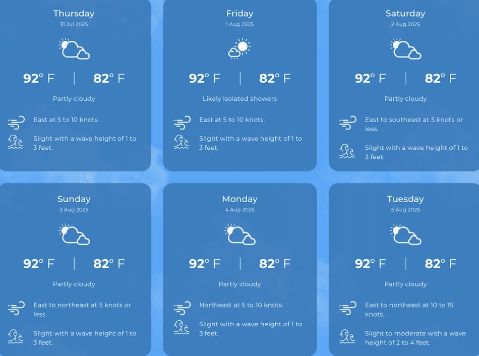 Expected temperatures: 82°F to 92°F. Yesterday: H 90.5°F L 80.1°F