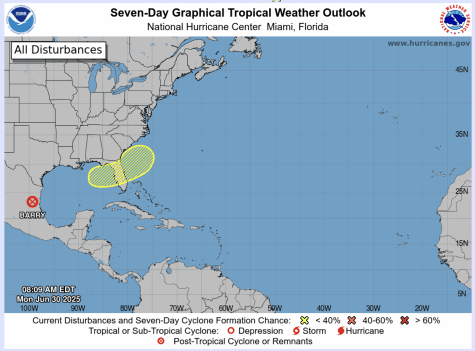 | Tropical Weather Outlook 800 AM EDT Mon June 30 2025 1205 UTC Mon June 30 2025 | |