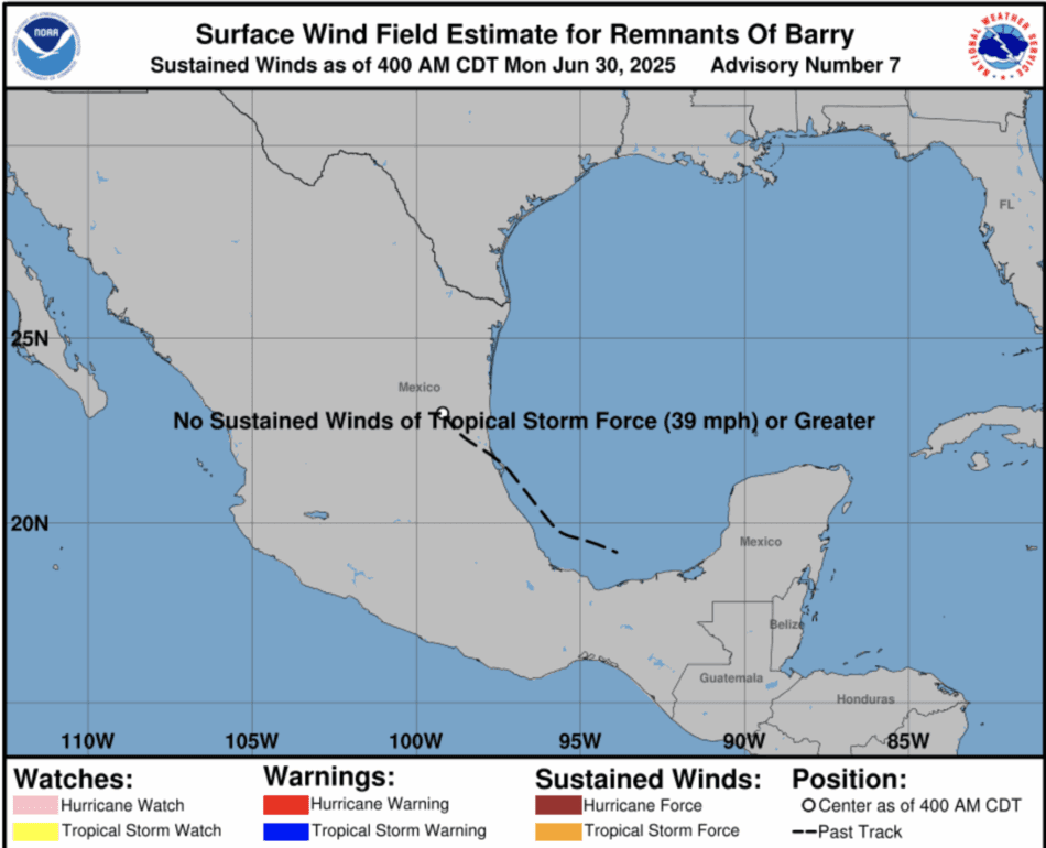 BARRY DISSIPATES OVER EASTERN MEXICO… …HEAVY RAIN STILL EXPECTED TO CONTINUE THROUGHOUT THE DAY