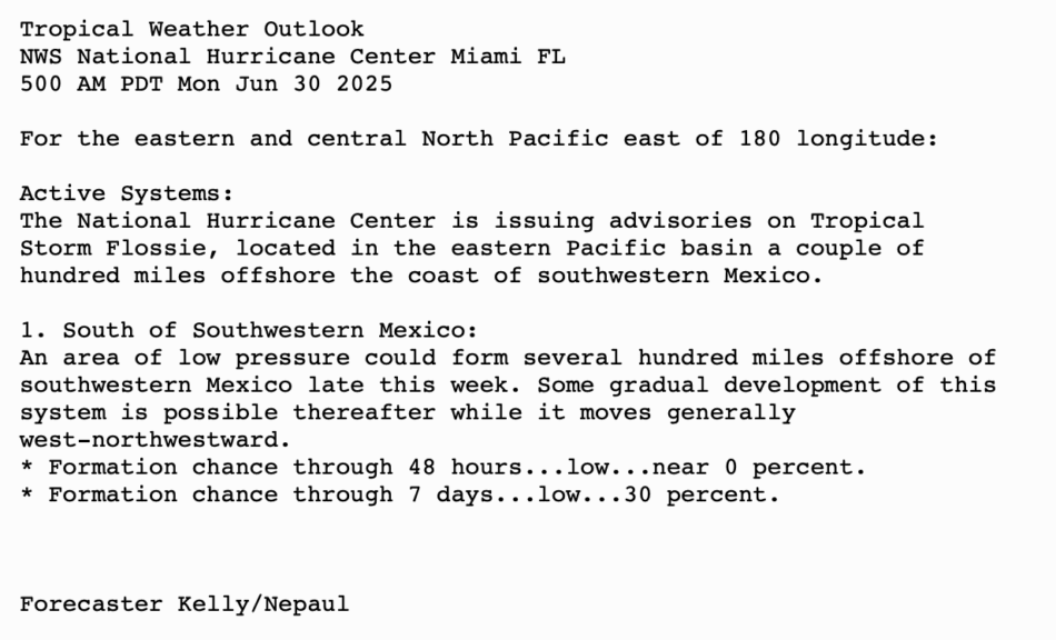 | Tropical Weather Outlook 500 AM PDT Mon June 30 2025 1005 UTC Mon June 30 2025 | |