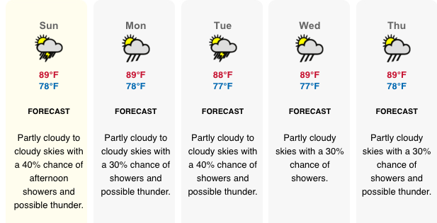 UV: 11.0 EXTREME (Same as yesterday) Expected temperatures – 75°F to 90°F. Yesterday: H 89.0°F L 75.9°F