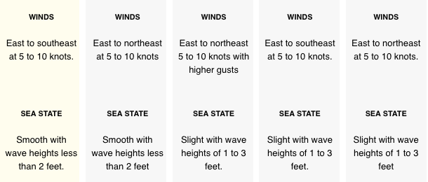 Winds: Today: ESE 5-10 mph Tonight: ESE 5-10 mph