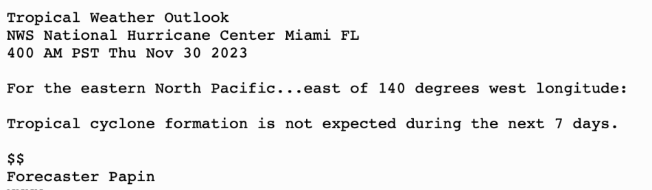 | Tropical Weather Outlook (en Español*) 8.00 AM EDT Thu 30 Nov 2023 | |