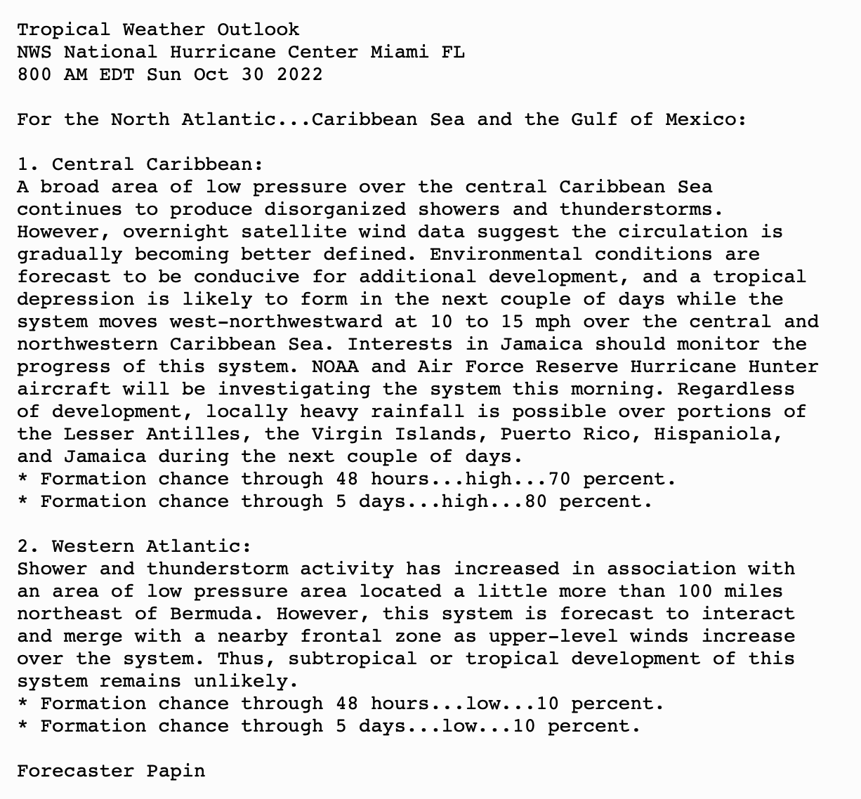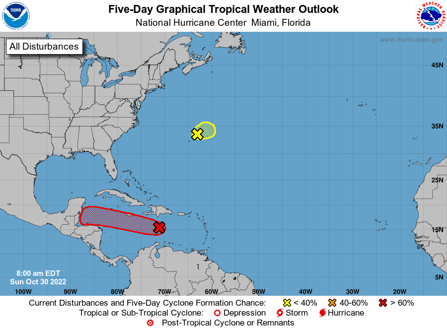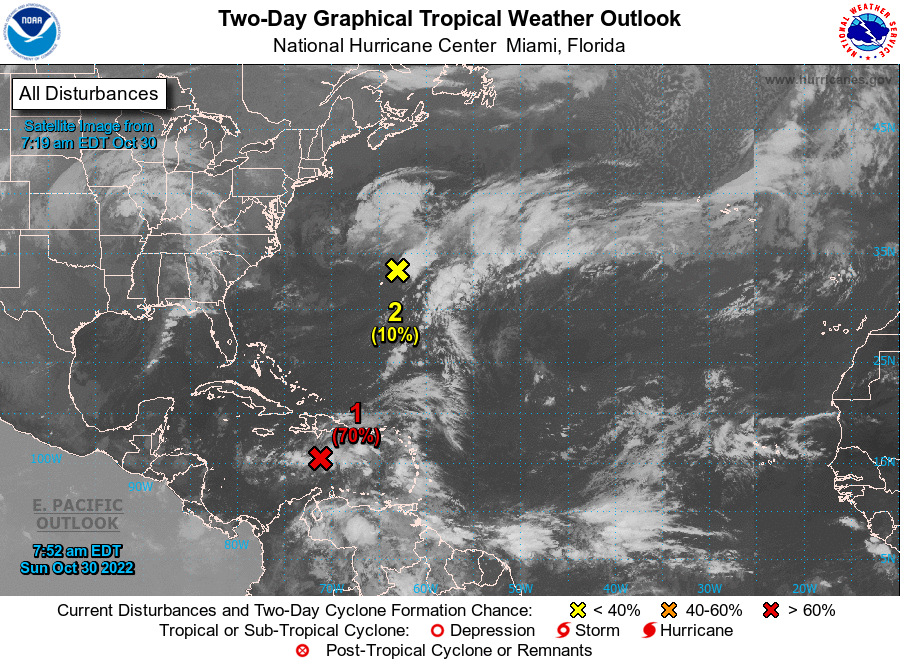| Tropical Weather Outlook (en Español*) 800 AM EDT Sun Oct 30 2022 1205 UTC Sun Oct 30 2022 | |