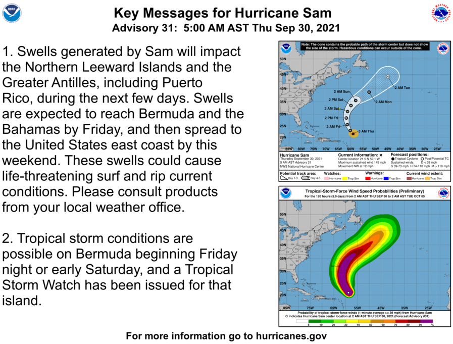INTENSE HURRICANE SAM CONTINUES NORTHWESTWARD