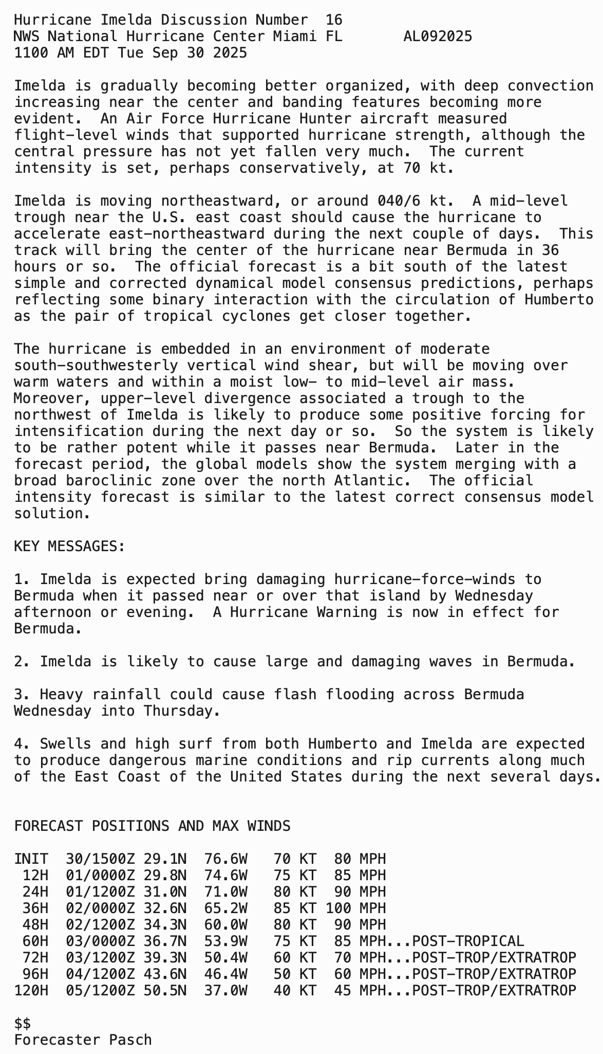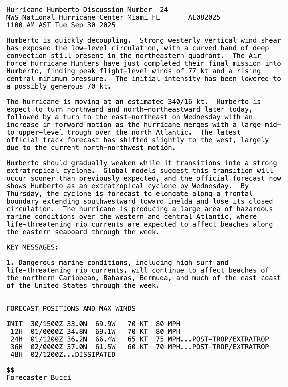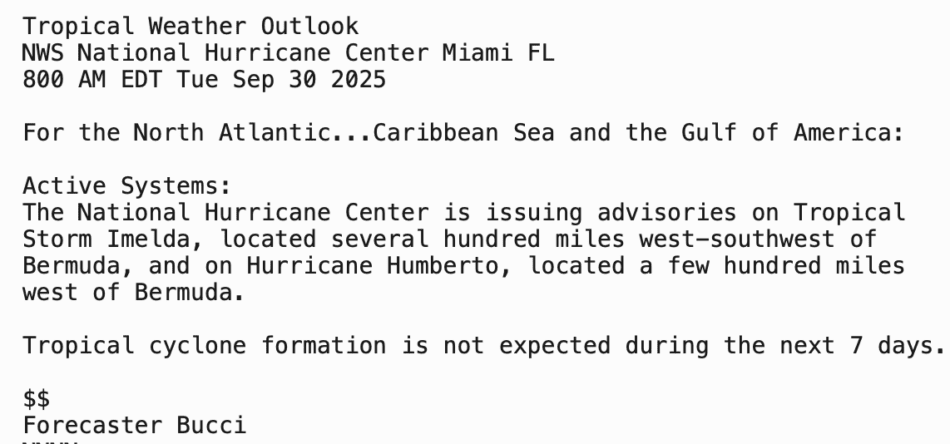| Tropical Weather Outlook 800 AM EDT Tue 30 Sep 2025 1205 UTC Tue 30 Sep 2025 | |