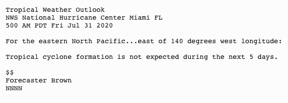 | Tropical Weather Outlook 500 AM PDT Fri Jul 31 2020 |