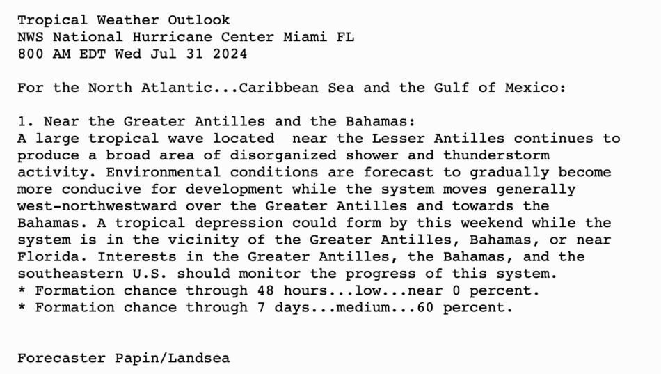 800 AM EDT Wed 31 July 2024