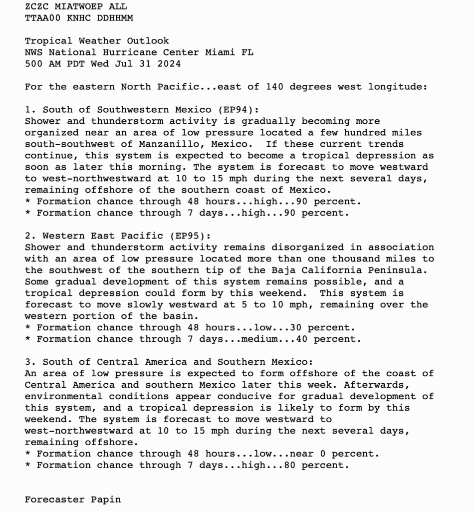 500 AM PDT Wed 31 July 2024