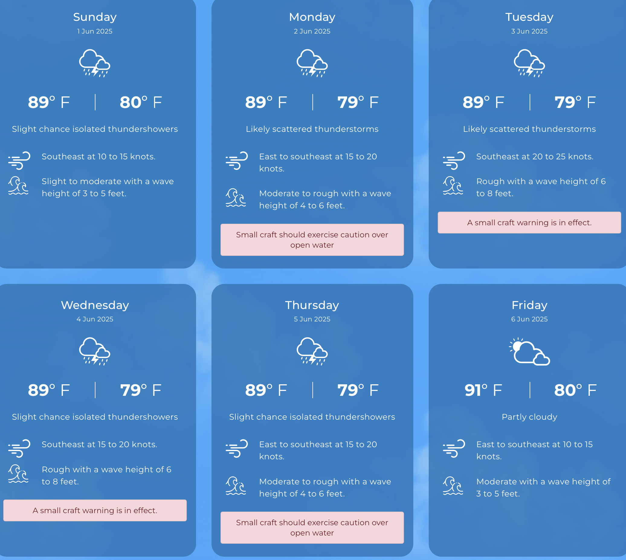 Expected temperatures: 80°F to 91°F. Yesterday: H 90.2°F  L 80.0°F