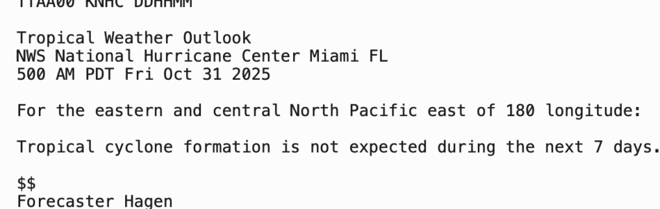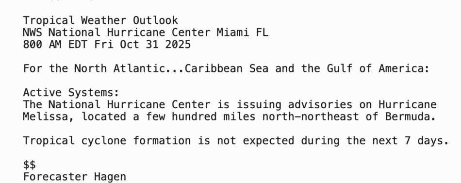 31 Oct Weather in Cayman & Tropical Report 1 H/cane