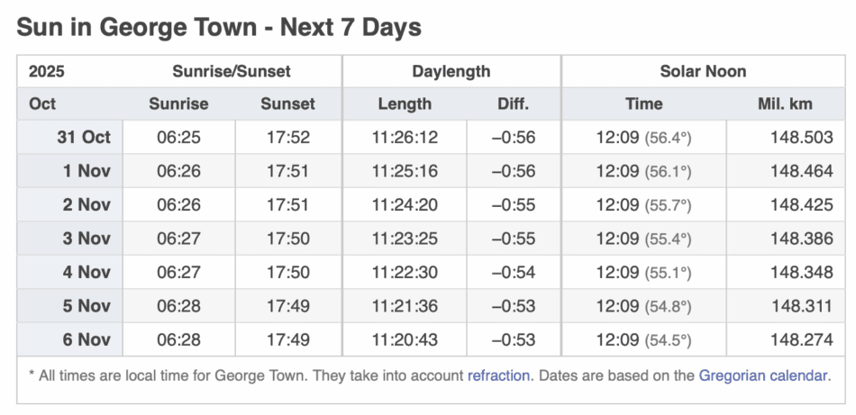 SUN IN GEORGE TOWN – NEXT 7 DAYS
