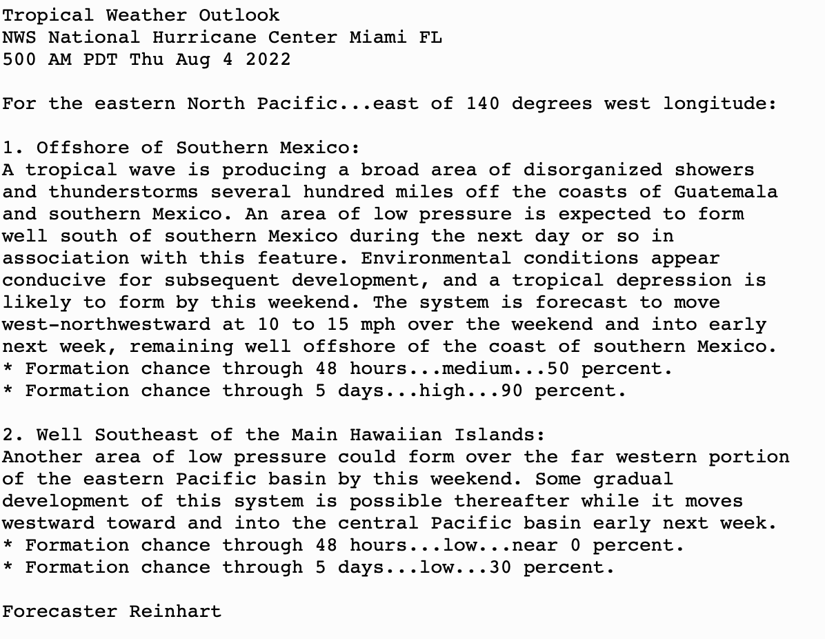 | Tropical Weather Outlook 500 AM PDT Thu Aug 4 2022 Tropical Weather Discussion 1005 UTC Thu Aug 4 2022 | |