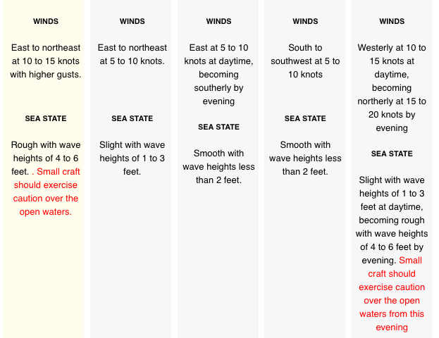 Winds: Today: E 10-20 mph. Tonight: E 5-10 mph