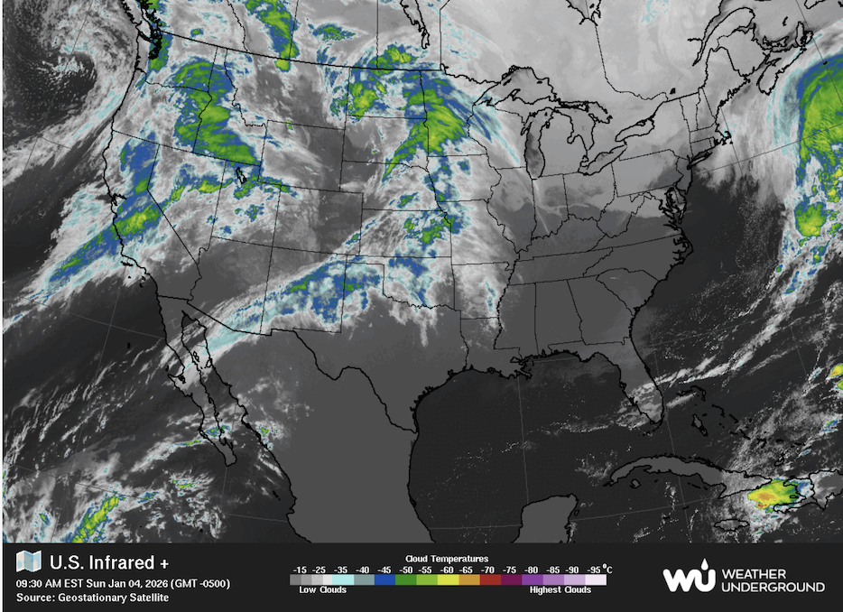 WU/TWC forecast. Today: Chance of a shower or two during the morning, followed by partly cloudy skies this afternoon. Winds N 10-20 mph.