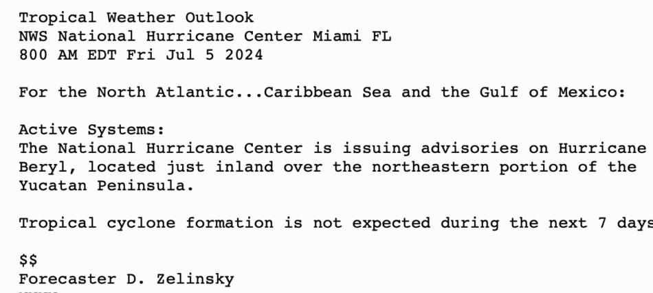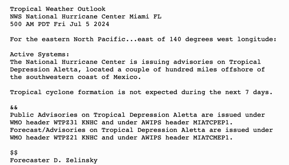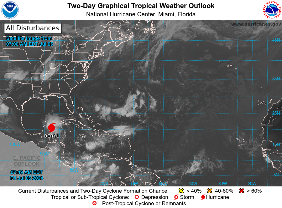 | Tropical Weather Outlook 500 AM PDT Fri 5 July 2024 Tropical Weather Discussion 1005 UTC Fri 5 July 2024 | |