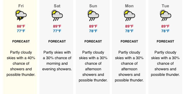 UV: 11.0 EXTREME (Same as yesterday) Expected temperatures – 78°F to 90°F. Yesterday: H 90.3°F  L 78.1°F